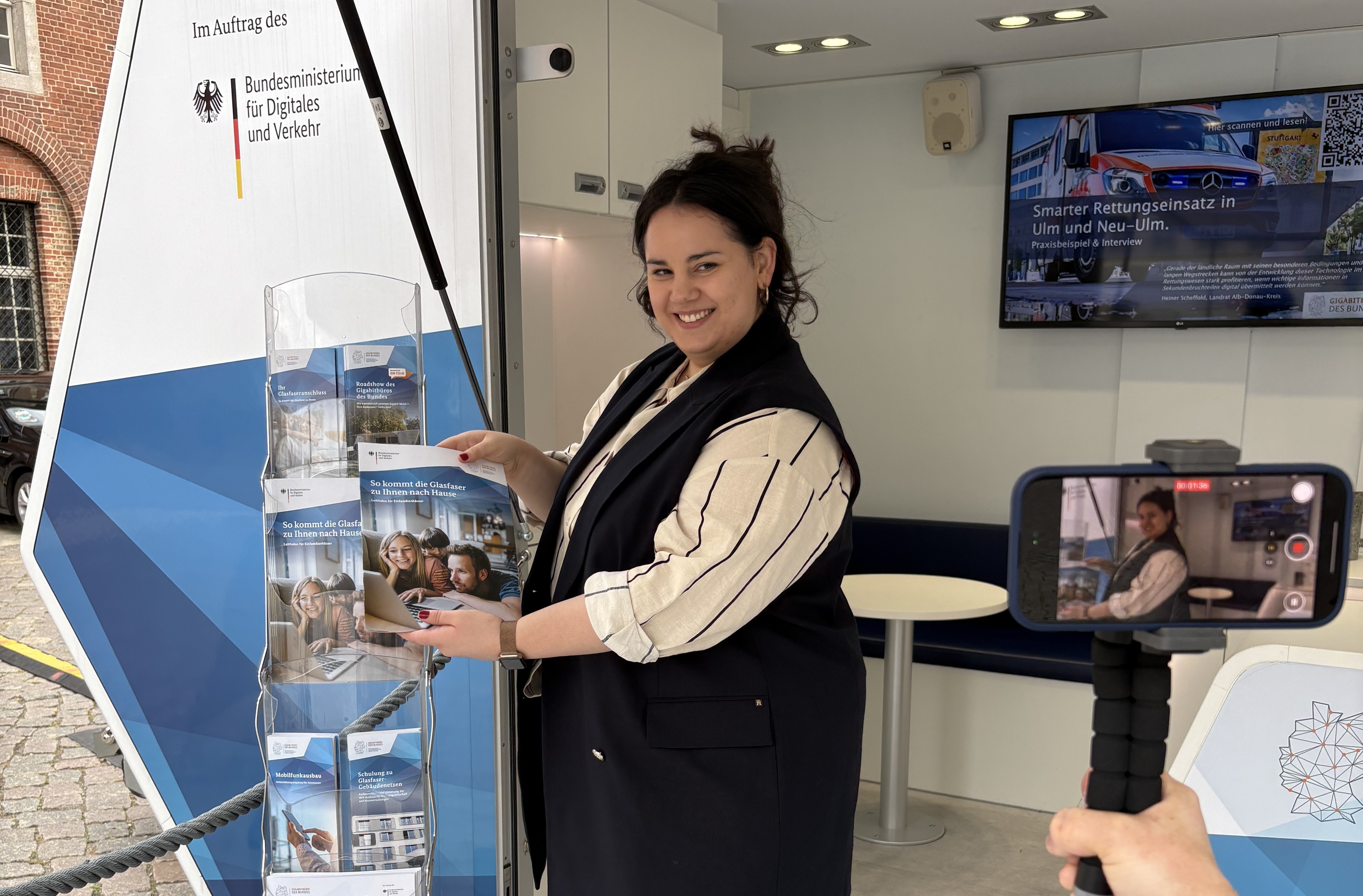 Wir informieren: Über unsere vielfältigen Kommunikationskanäle geben wir Neuigkeiten zu aktuellen Entwicklungen, aber auch Basiswissen zum Glasfaser- und Mobilfunkausbau, an die Öffentlichkeit weiter. Im Rahmen unserer Glasfaser-Infoveranstaltung und vor Ort auf unserer Roadshow mit dem Gigabit-Mobil treten wir in den direkten Austausch.